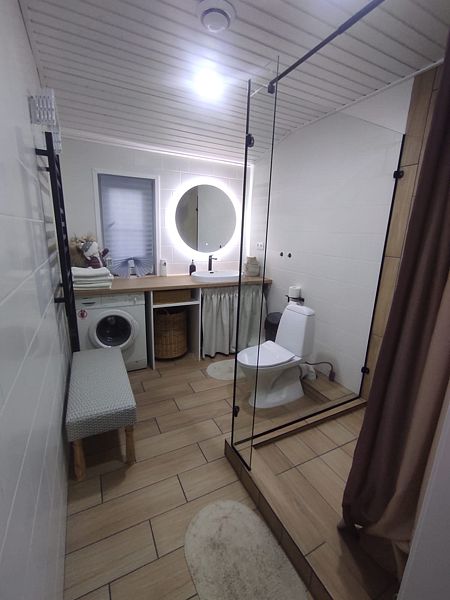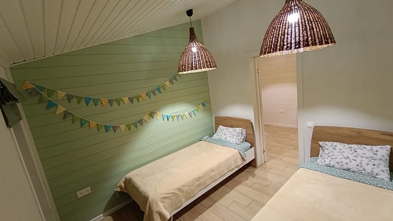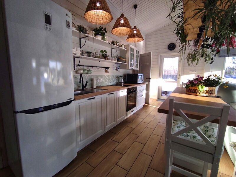 В доме все условия для вашего комфорта. В пятнадцати минутах ходьбы озеро с плавным заходом: подходит как для самых маленьких гостей, так и для больших, желающих вдоволь поплавать.