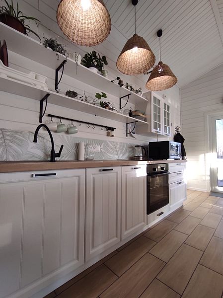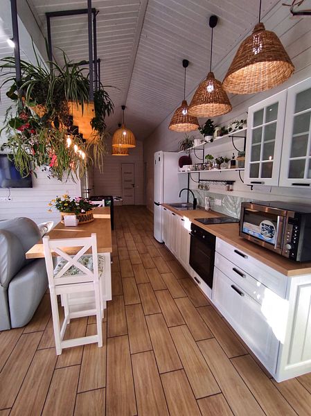 Дом в стиле барнхаус ждет гостей для незабываемого отдыха. Комфортный, большой, в приятных светлых тонах и с живыми цветами никого не оставит равнодушным.