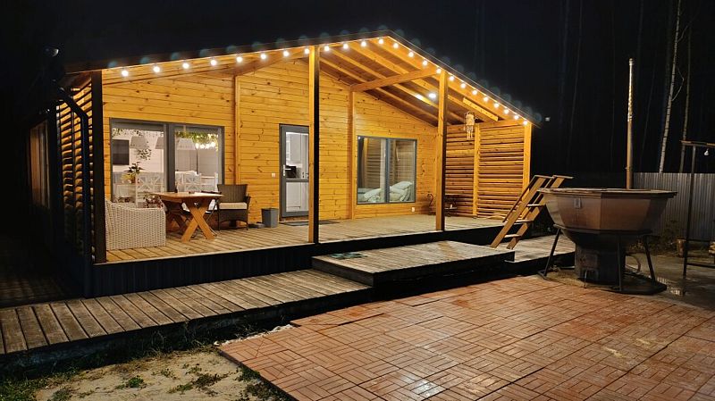 Гости могут расслабиться в индивидуальной сауне внутри дома, а рядом с барнхаусом расположен банный чан с пихтовыми вениками. В пятнадцати минутах ходьбы находится живописное озеро с пологим берегом. Это идеальное место для купания как для детей, так и для взрослых.