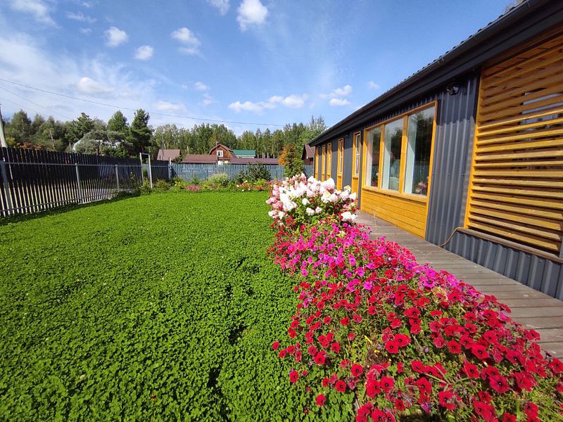 В доме три спальни, два санузла и две душевые, просторная кухня-гостиная. На территории дома есть два входа, крытая терраса площадью 27 м² и зона для барбекю с навесом. Открытая терраса проходит по всему периметру дома, что позволяет наслаждаться свежим воздухом и красивыми видами. Для автомобилей предусмотрена удобная парковка на шесть мест.