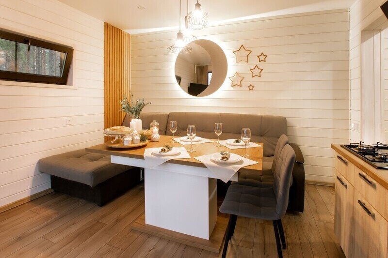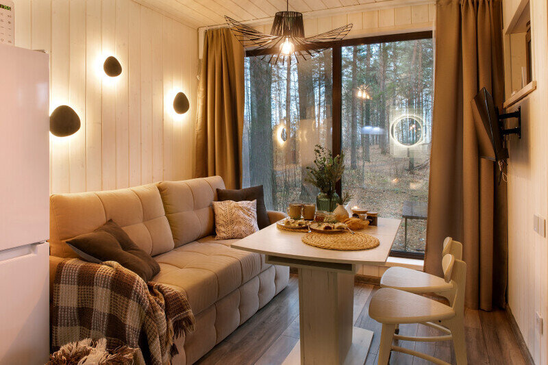Глэмпинг предлагает уютные экодомики, расположенные на территории. Дома созданы с использованием природных материалов и обеспечивают максимальный комфорт для гостей. В каждом из них есть спальня, гостиная, ванная комната и полностью оборудованная кухня. Вы сможете наслаждаться уединением и спокойствием, находясь в окружении природы.