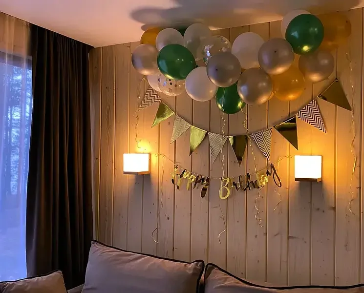СтоимостьОт 4000 ₽Информация от 18 февраля 2024 Оформление к дню рожденияПлатно (Информация от 18 февраля 2024) Украшение дома к приезду именинника: бумажная гирлянда Happy Birthday, воздушные шары в цветовой гамме на выбор, тортик.   Оформление к дню рожденияОписаниеУкрашение дома к приезду именинника: бумажная гирлянда Happy Birthday, воздушные шары в цветовой гамме на выбор, тортик. СтоимостьОт 4000 ₽Информация от 18 февраля 2024 Романтическое оформлениеПлатно (Информация от 18 февраля 2024) Дом украшен воздушными шарами в форме сердец, расставлены свечи, фруктовая тарелка, бутылочка игристого напитка.   Романтическое оформлениеОписаниеДом украшен воздушными шарами в форме сердец, расставлены свечи, фруктовая тарелка, бутылочка игристого напитка. СтоимостьОт 4000 ₽Информация от 18 февраля 2024