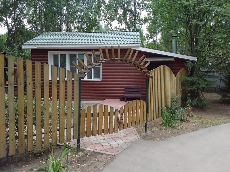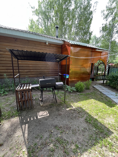 Домик вместимостью 4 человека. В доме: 2 комнаты (в одной двуспальная кровать, в другой раскладной угловой диван), инфракрасная сауна, музыкальный центр, ТВ с караоке, душевая, санузел, DVD, беседка у дома. Рядом с домом расположен мангал для приготовления шашлыков.