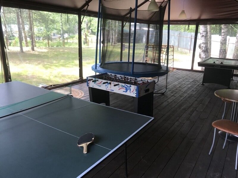 На территории к услугам отдыхающих — малое кафе (работает при большой загруженности), банкетный зал, русские бани, коттедж с финской сауной, таунхаус на 5 комнат, дом с инфракрасной сауной, гостиничные номера. Возможность размещения в домах до 35 человек единовременно.