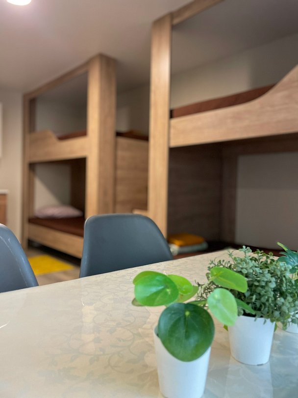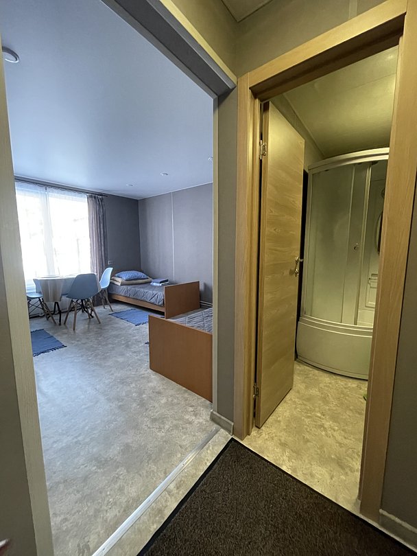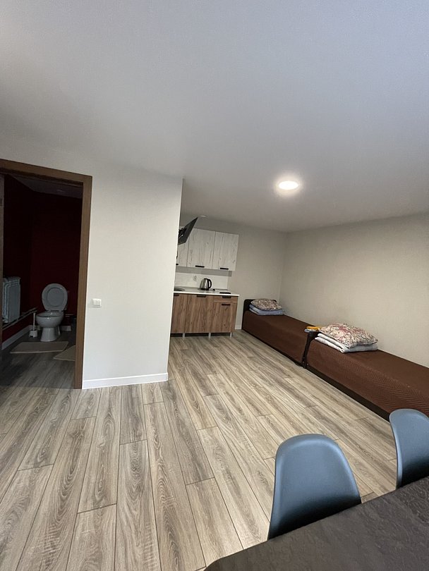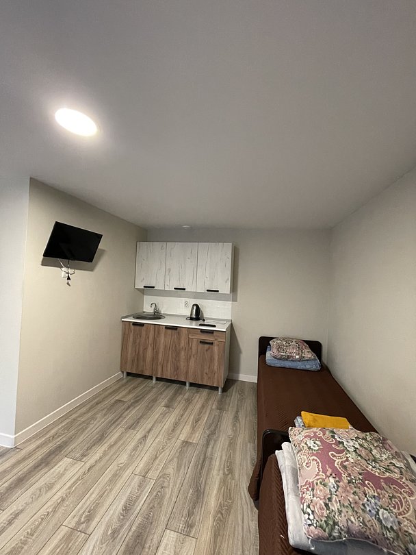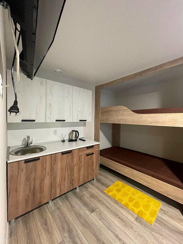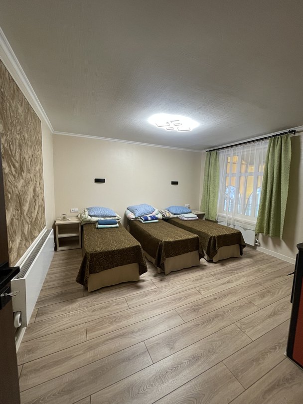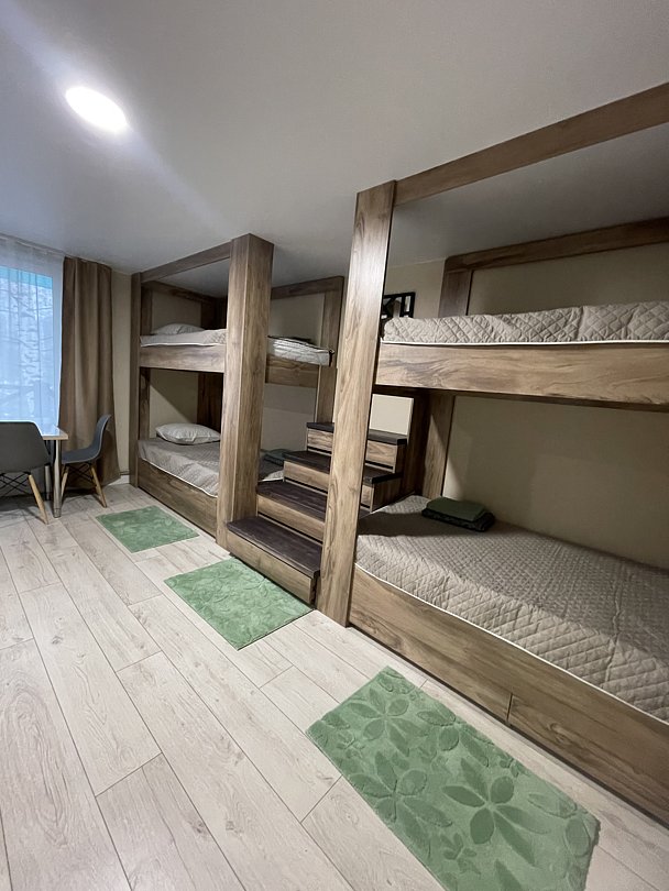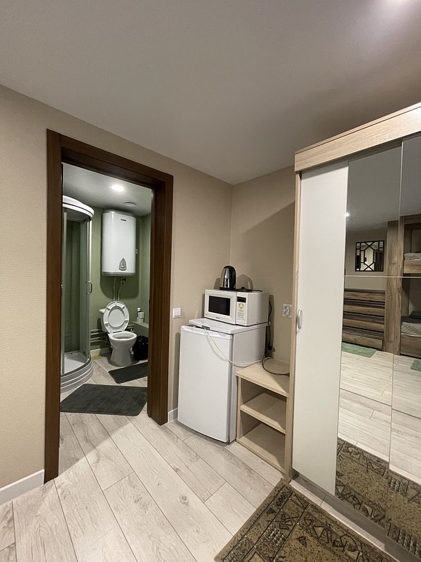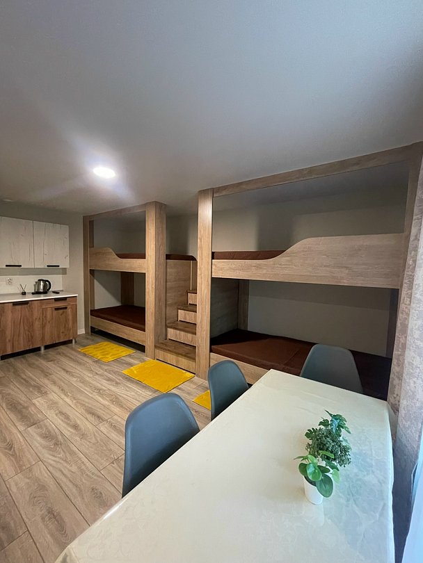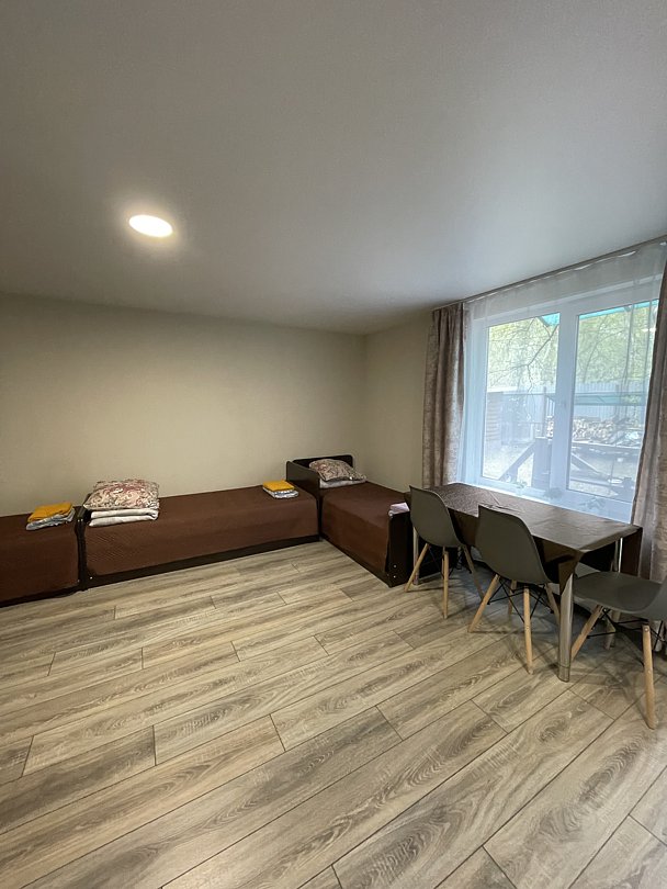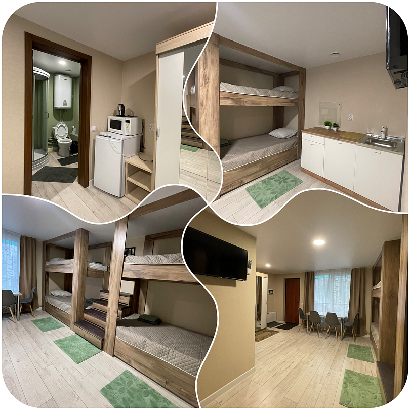 Четырёхместный номер в таунхаусе. Номер имеет отдельный вход с улицы, оборудован душевой кабиной и санузлом, а также в каждом номере есть электрический чайник.