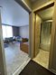 Микроволновая печь, мини холодильник, тумбочка, двуспальная кровать, зеркало, стол, стул, душевая кабина, туалет, раковина, чайник, телевизор.