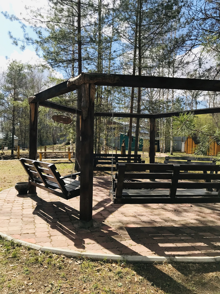 Главная особенность базы отдыха — водоем с рыбой (карась) и мост через водоем. Для малышей оборудована детская площадка. Для проведения мероприятий до 80 человек в летний период предусмотрена крытая веранда. Территория турбазы занимает 1,2 га. Это отличное место для культурного, семейного и корпоративного отдыха в атмосфере домашнего уюта.