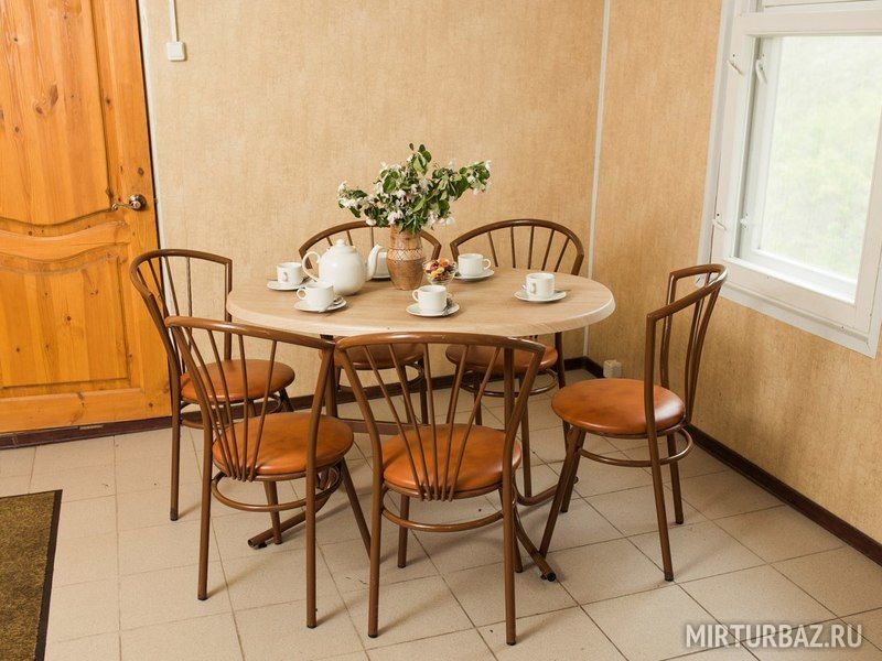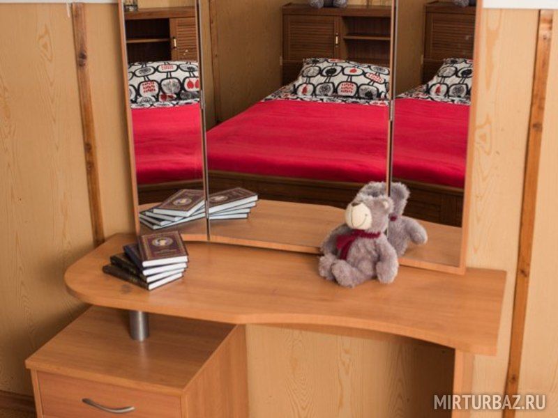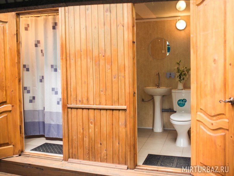 Возможно размещение в деревянных домиках в 2-х, 3-х, 4-х местных номерах с телевизорами.