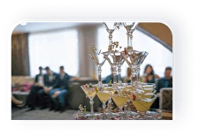 Торжественная, праздничная дата Вашей жизни — это повод собрать за одним столом самых близких людей и душевно провести время. В случае, если компания небольшая, то мы можем предложить провести Ваше мероприятие в малом зале который идеально подходит для дня рождения, юбилея, миникорпоратива, выпускного вечера, детского праздника и других событий компаниями от 10 до 50 человек. Для небольших праздников подойдут комфортные столики с мягкими стульями. Команда ресторана имеет большой опыт в организации торжеств в собственных банкетных залах и предложит вам все возможные варианты праздничного меню для наслаждения вкусными блюдами и напитками.