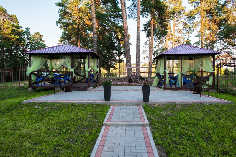 Беседки с полом и крышей. Беседки оснащены всем необходимым для приятного и комфортного отдыха: мебелью (столы, лавочки), мангалом, углем, решеткой для барбекю и средством для розжига. Арендовать беседку для себя и друзей можно и без проживания в Загородном клубе «Олимпия».