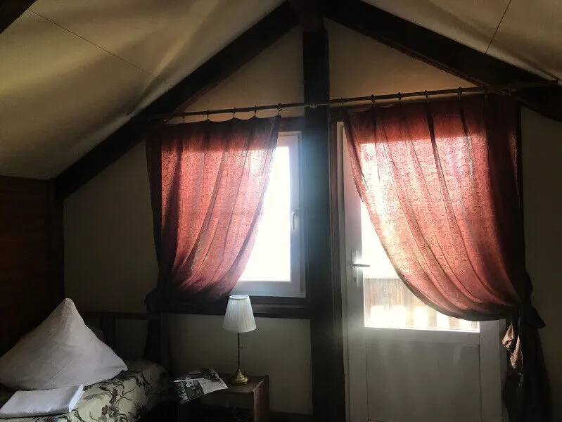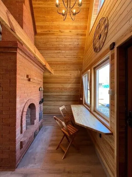 Мы бронировали треугольный домик Монблан. Это совершенно новый дом с дизайнерским ремонтом, мини-кухней, стильной мебелью и сантехникой в ванной комнате. В доме даже есть настоящая огромная кирпичная печь! Рядом терраса с садовой мебелью и грилем. Было приятно там посидеть и пожарить шашлык.