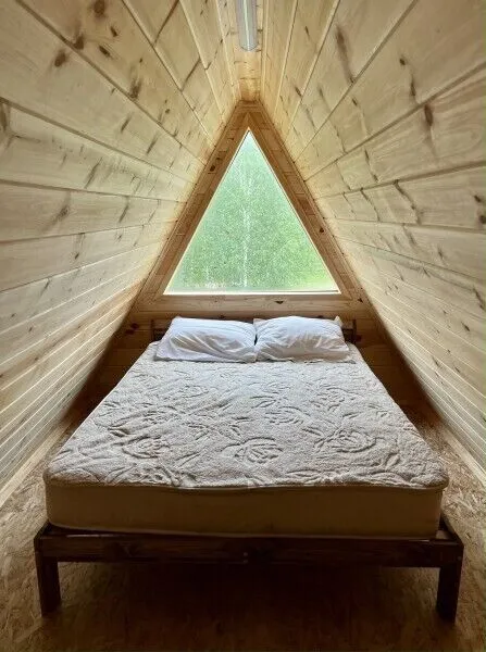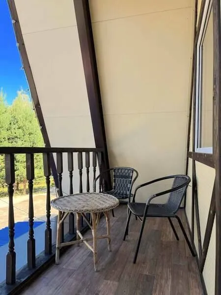 Уютный А-образный домик с панорамным балконом находится на территории живописного парк-отеля. Всего в нескольких минутах ходьбы расположены река Ока и Ефановский затон, что делает это место идеальным для отдыха вблизи природных красот.
