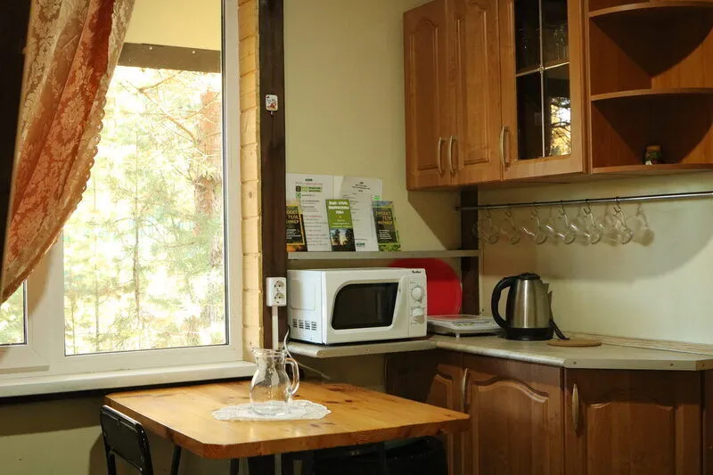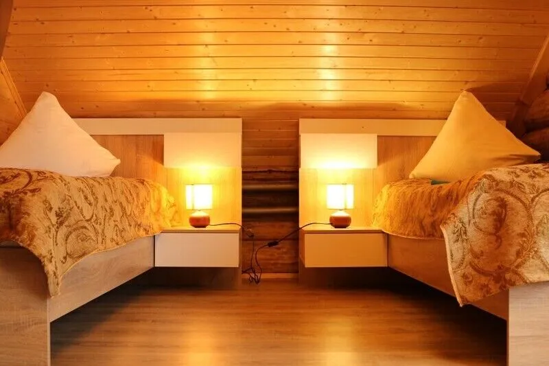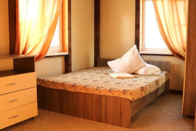 Планировка дома включает в себя четыре просторные спальные комнаты, каждая из которых оборудована удобными двуспальными кроватями. Кроме того, в коттедже имеется мини-кухня, где можно самостоятельно готовить блюда.