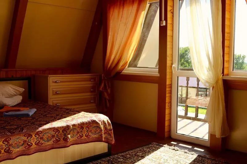 Отдельного упоминания заслуживает кровать на мансарде со вторым светом. Постельное белье новенькое и буквально похрустывает от свежести... Лежишь и любуешься прямо с кровати на великолепную природу. Красота!