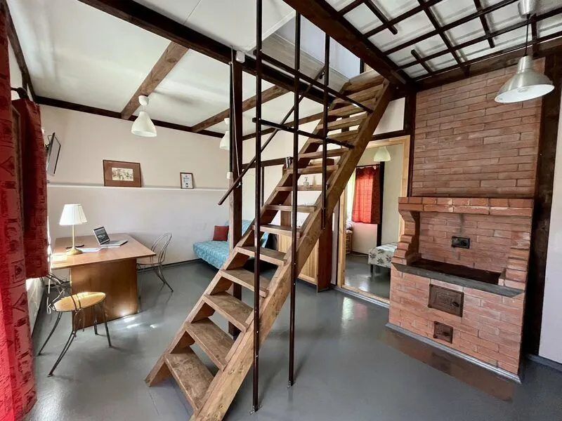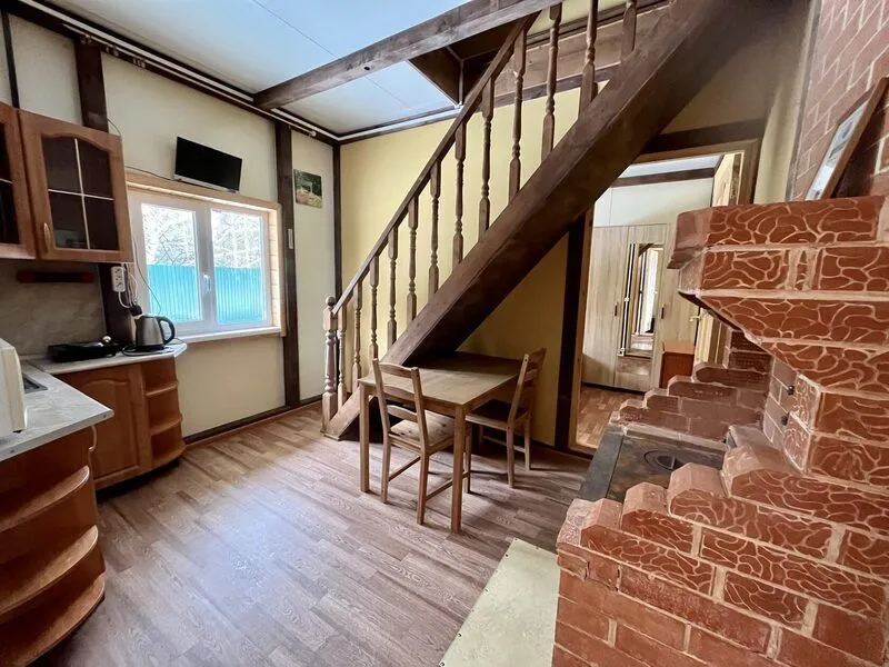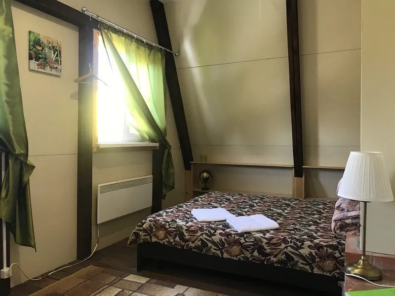 Внутреннее пространство дома занимает три этажа. На первых двух этажах располагаются два просторных спальных помещения с двуспальными кроватями, а на мансардном этаже есть дополнительное спальное место. Также в доме есть большой светлый зал и полностью оборудованная кухня, обеспечивающие комфортные условия для проживания. Завершает картину уютная ванная комната.
