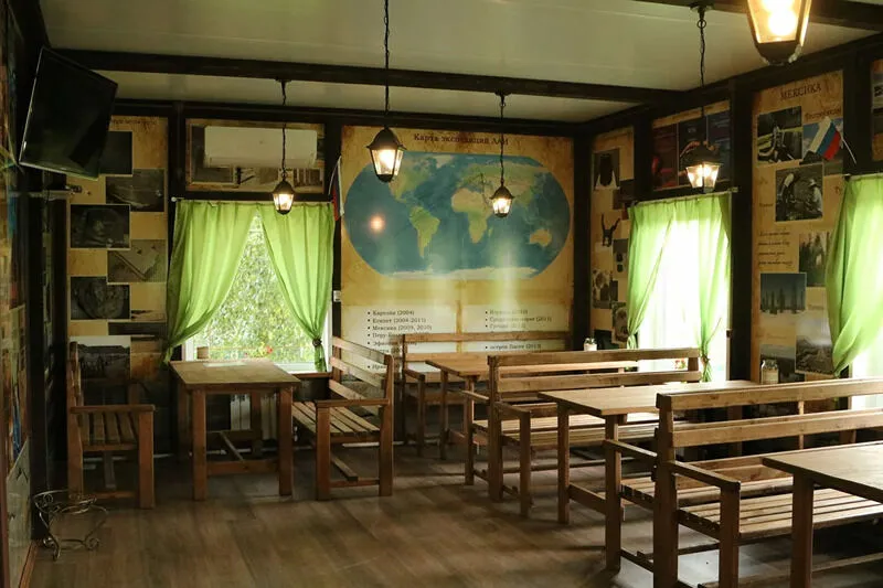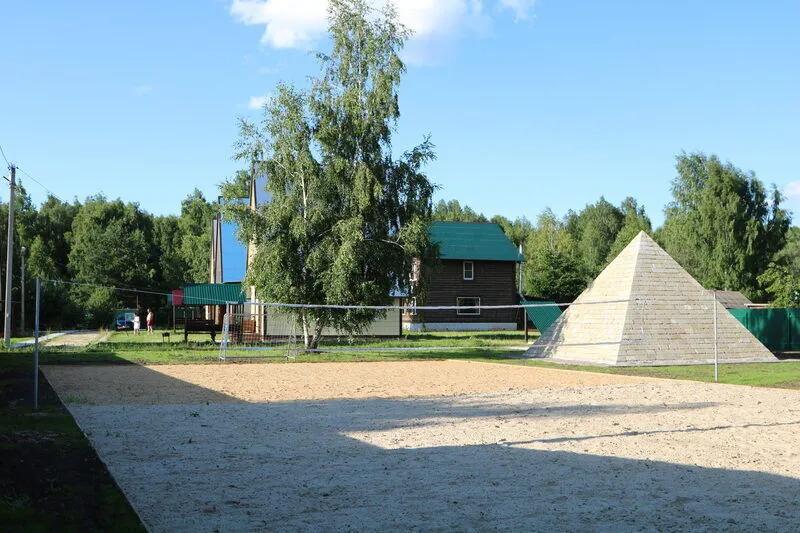 Значит, на территории Перемиловых Гор 5-6 домиков для отдыхающих, большая столовая (подавали завтрак-обед-ужин), кафе, прудик с рыбками, качели, также здание для лекций и хозяйственные постройки. Из развлечений – песочная футбольная площадка, настольный теннис. Есть интересное сооружение – настоящая миниатюрная пирамида с подземными туннелями, в неё даже можно зайти. Что рядом с базой? Лес – сразу за воротами, река – в 5 минутах ходьбы.