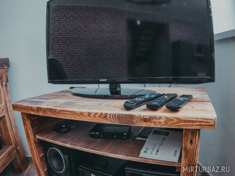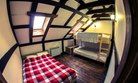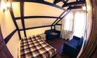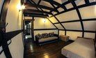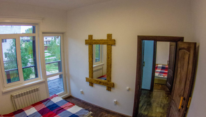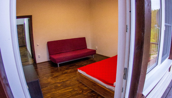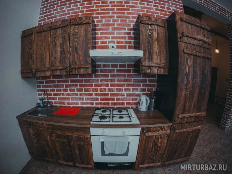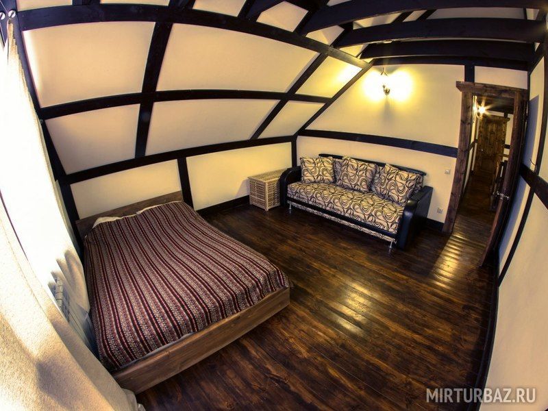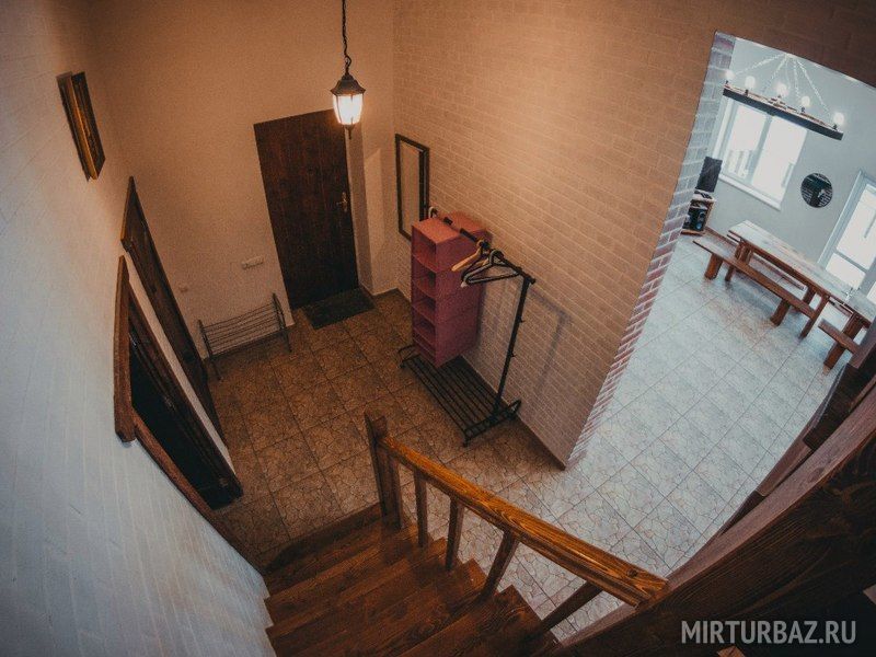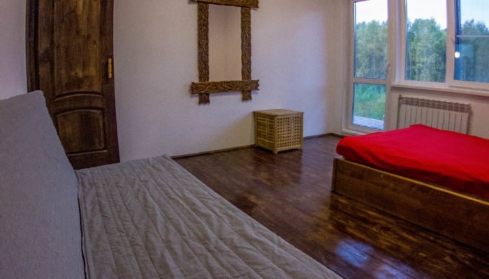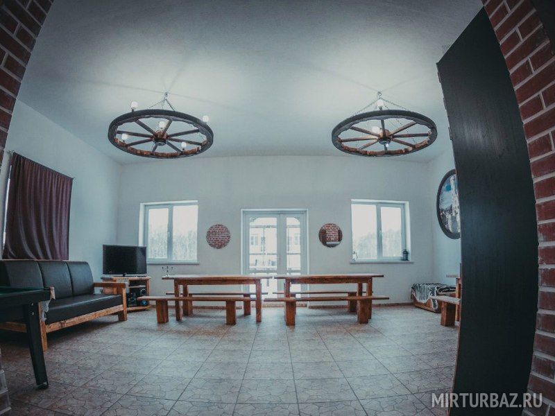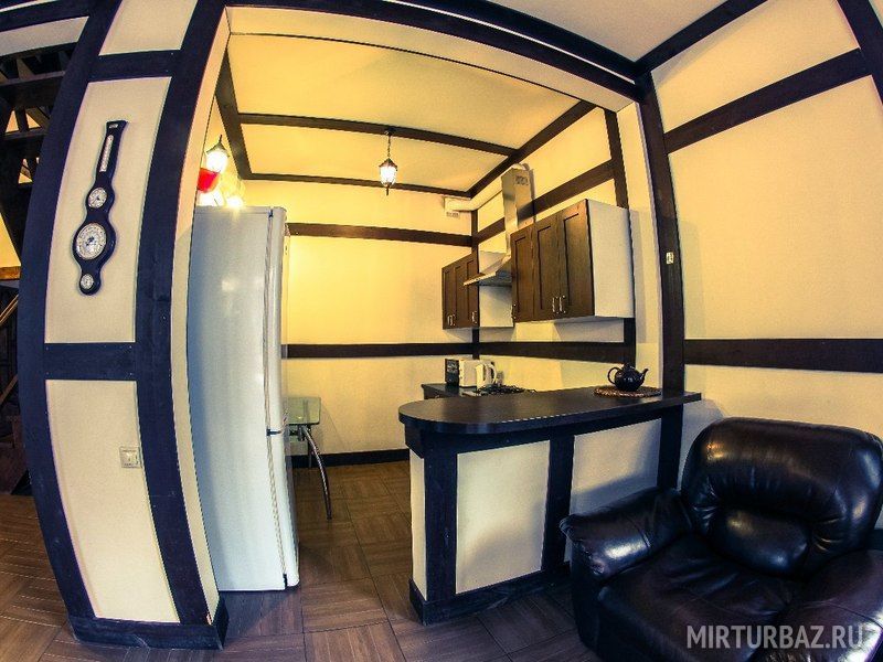 - средневековая башня с винтовой лестницей и смотровой площадкой, откуда открывается умопомрачительный вид на природные окрестности. Все в этом коттедже носит «брутальный характер». Это в первую очередь эксклюзивная мебель ручной работы : двухъярусные двуспальные кровати, на которых не стыдно было бы предложить переночевать царской особе, гостиная с кирпичными стенами, массивный сундук, огромные люстры-колеса со свечами, создающие таинственную замковую атмосферу.Теплые полы на первом и втором этажах, своя котельная и скважина