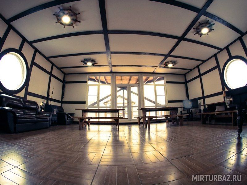 6 спален, комнату отдыха и баню на дровах прямо в доме. Гостиная с окнами-иллюминаторами, с панорамным остеклением, выходящая на крытую веранду-палубу.Из спален на втором этаже есть выход на «нос» и «корму» корабля для чаепития и загорания в теплое время года. Комната отдыха при бане может быть переоборудована в седьмую спальню по запросу при большом количестве человек. В доме 3 душевые, 2 санузла.В коттедже своя котельная и теплые полы.