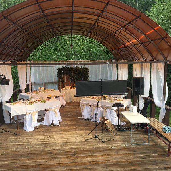 Рядом с коттеджем «Черная Жемчужина» расположилась прекрасная летняя беседка, которая идеально подходит для проведения небольшого банкета или праздника.