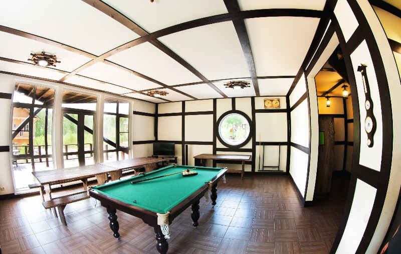 Стилизованные под средневековый пиратский корабль и форт коттеджи имеют просторную гостиную с панорамным остеклением и иллюминаторами, «нос» и корма кораблей выполняют функцию открытых веранд, где можно наслаждаться природой, в летнее время года загорать на шезлонгах, устраивать чаепитие!