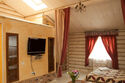 Бассейн и инфракрасную сауну, просторную кухню - столовую, холл с камином, спутниковое ТV, WI-FI, домашний кинотеатр. Каждый номер оснащен спальными местами (2-х или 1,5), с/у с душевой, TV.