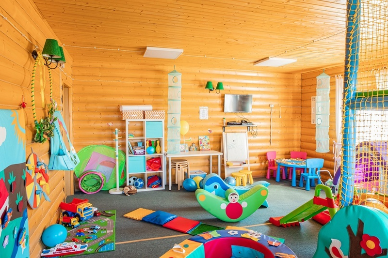 Детская комната с лабиринтом в 3 этажа, сухим бассейном и интерактивными играми.