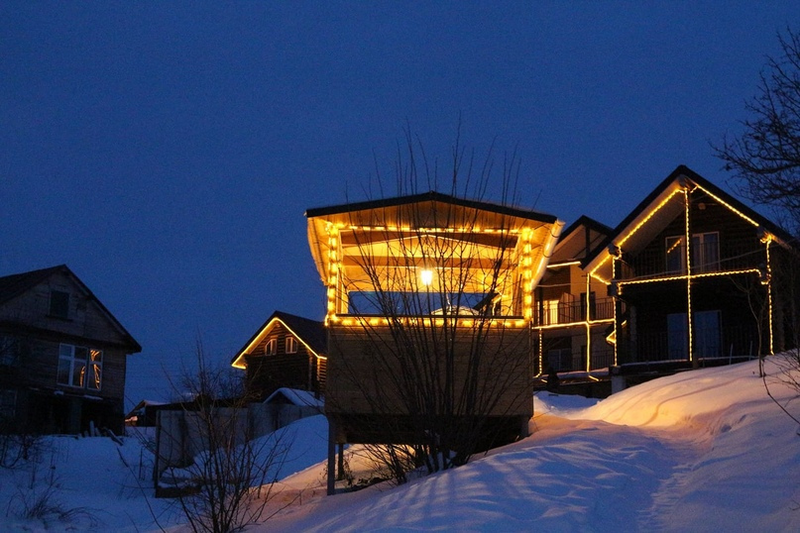 В клубе можно собраться компанией от 20 до 40 человек. Здесь можно организовать любое мероприятие. Клуб включает один основной коттедж и два дополнительных, общая площадь составляет 540 м².