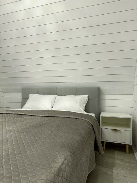 В доме две спальни. Просторная гостиная, объединенная с кухней, создает идеальное пространство для общения с семьей.