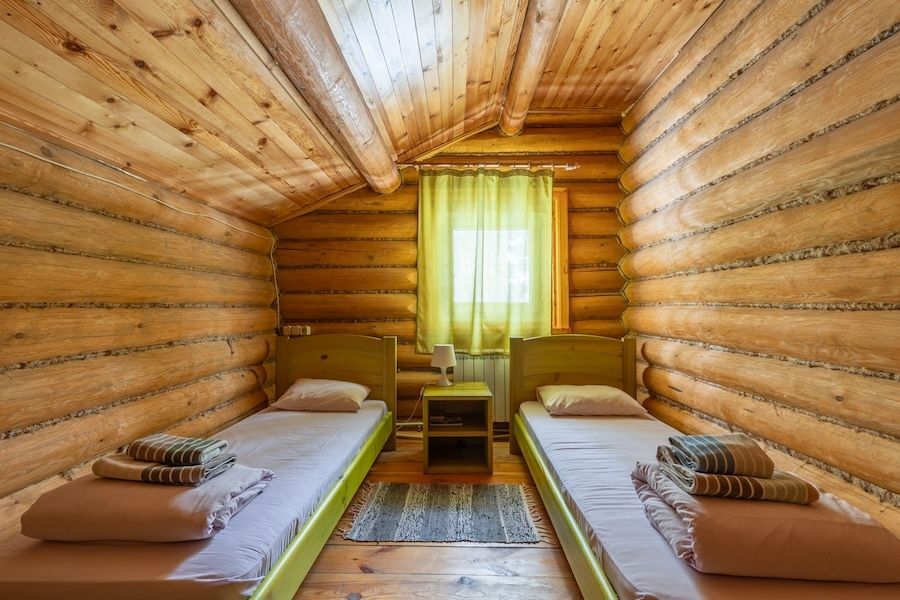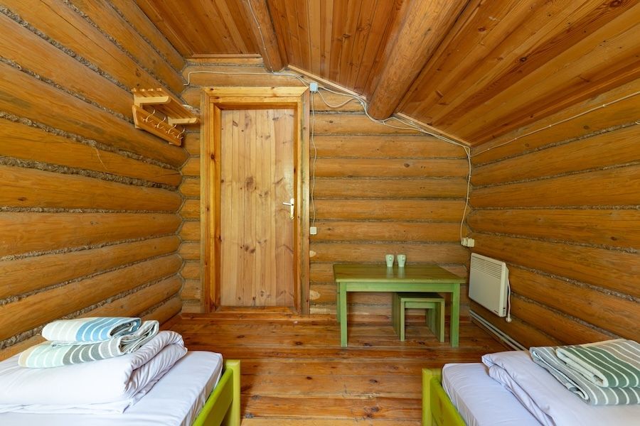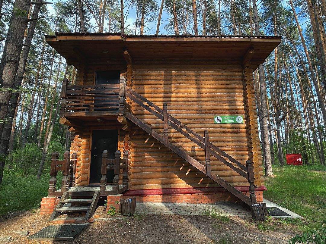 Бобровый домик – двухэтажный дом, с отдельными входами. На 2-ом этаже 2 номера, которые объединяет общий холл, один стол, две лавочки.
