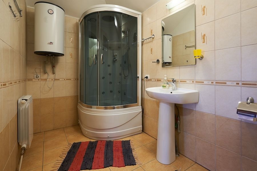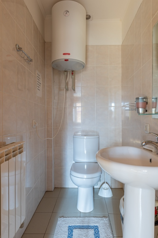 Двухэтажный номер с общим входом, санузлом/душевой на первом этаже.