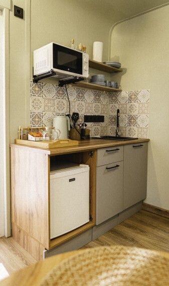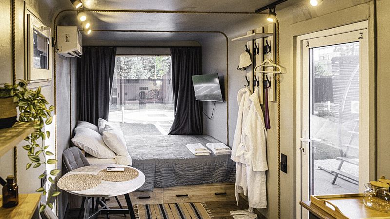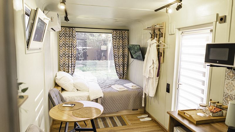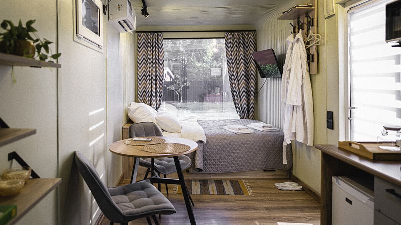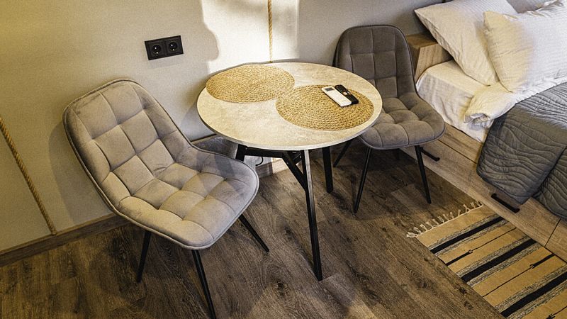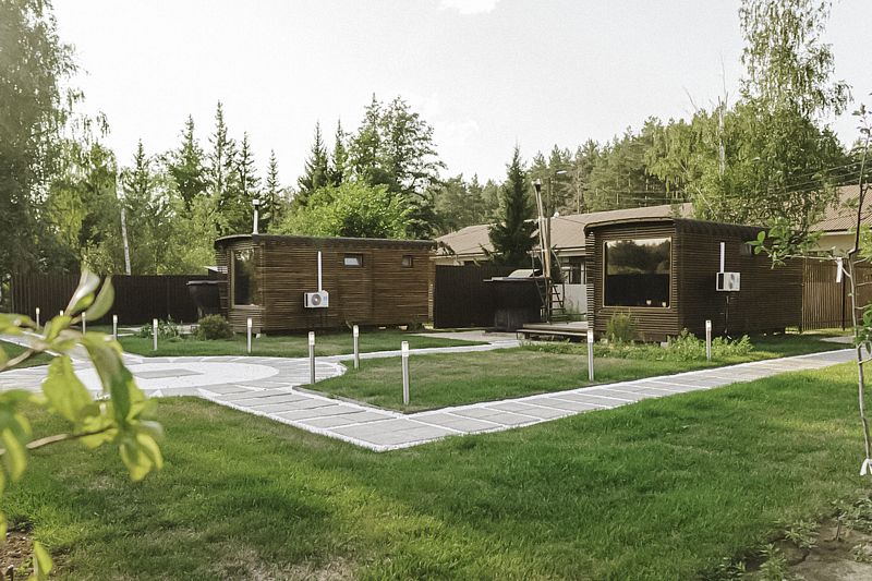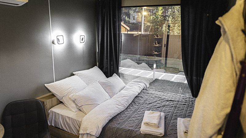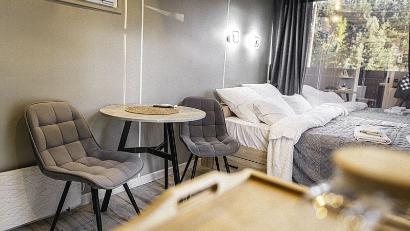 Каждый домик оборудован всем необходимым для комфортного отдыха: от удобных кроватей с ортопедическими матрасами до современных кухонных зон со всем необходимым инвентарем. Теплые полы и уютный интерьер с использованием натуральных материалов делают пребывание здесь незабываемым.