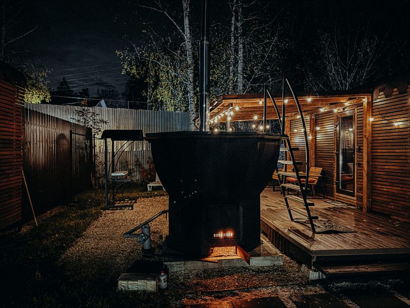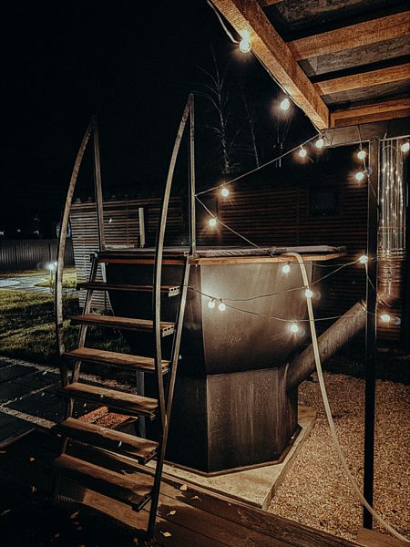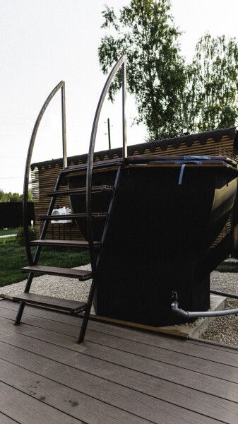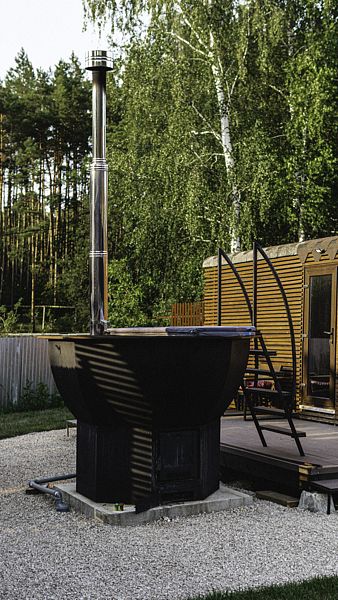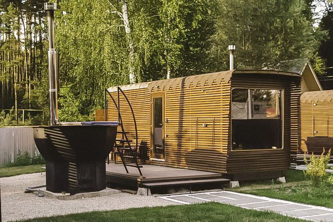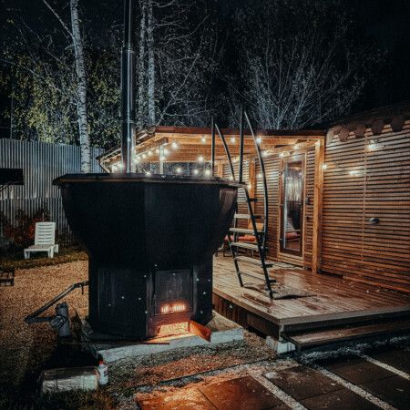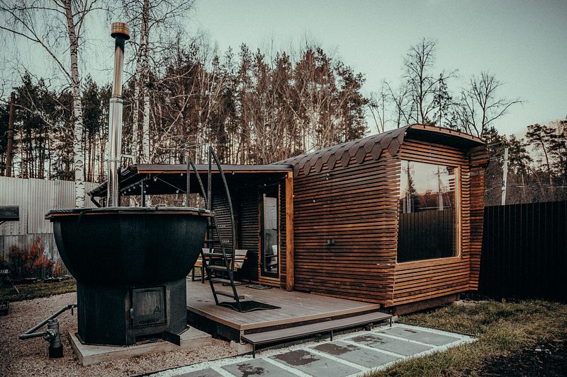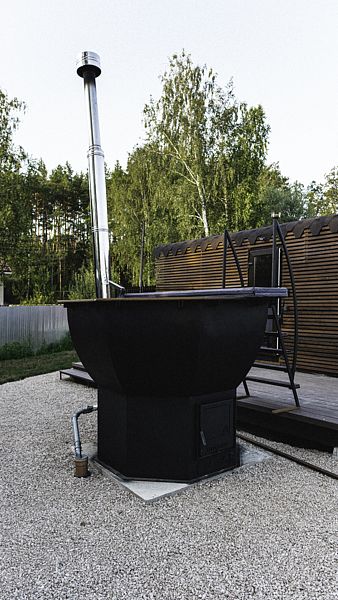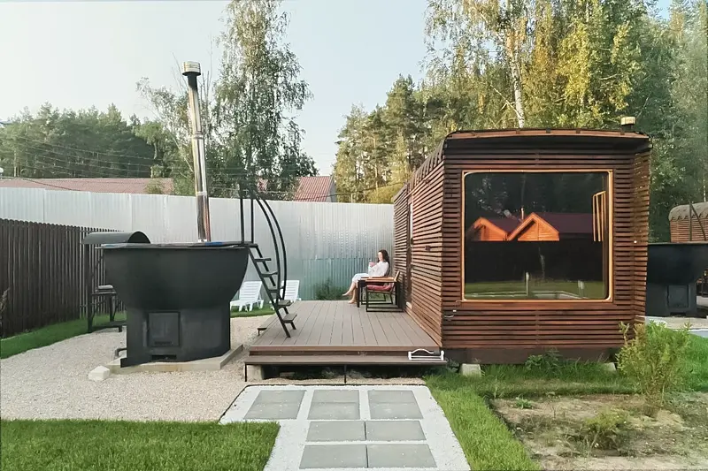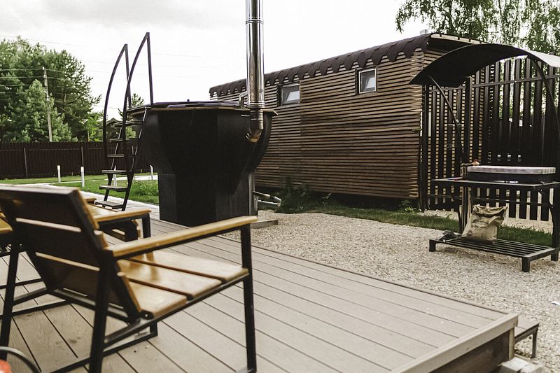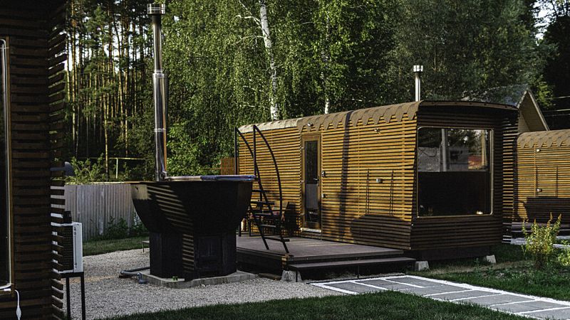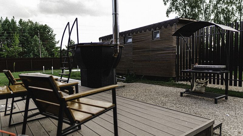 В глэмпинге «РослаТрава» рядом с каждым домиком находится собственный банный чан, предлагающий полное расслабление.