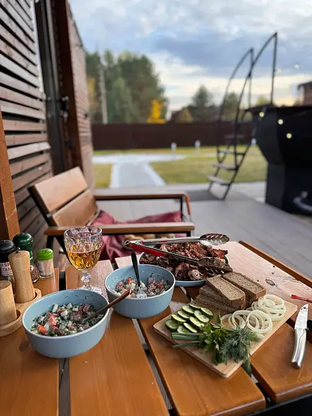 У каждого домика предусмотрена личная мангальная зона, оборудованная шампурами, решеткой для шашлыка и удобным розжигом. Это идеальное место, чтобы приготовить восхитительные блюда на огне и насладиться трапезой в компании любимого человека.