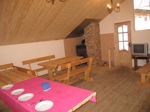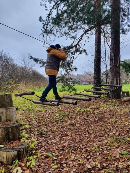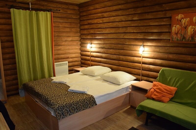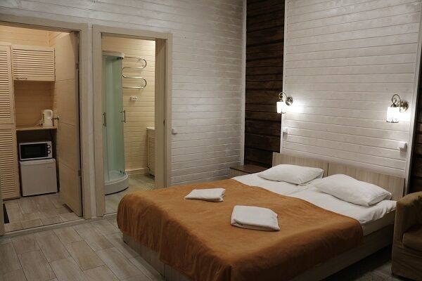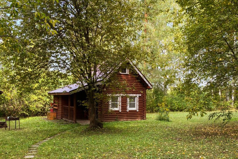 Уютный бревенчатый домик в лесной части базы предлагает особую атмосферу покоя и уюта. Стены из натурального дерева и текстиль из льна создают приятную обстановку. Подогреваемый пол обеспечивает комфорт даже в холодное время года. Сеновал в доме предлагает возможность выспаться на свежем сене, а летняя терраса приглашает насладиться солнцем или отдохнуть вечером, завернувшись в плед. Благоустроенный чердак может служить как спальное место в теплое время года.