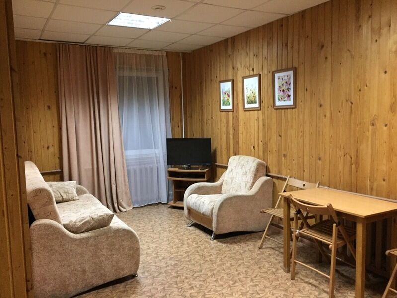 Оснащение: полутораспальная кровать 2 шт., кресло-кровать, журнальный столик, телевизор, шкаф для одежды, вешалка, электрический чайник, столовые приборы (поднос, графин, чайные бокалы, вилки, ложки).