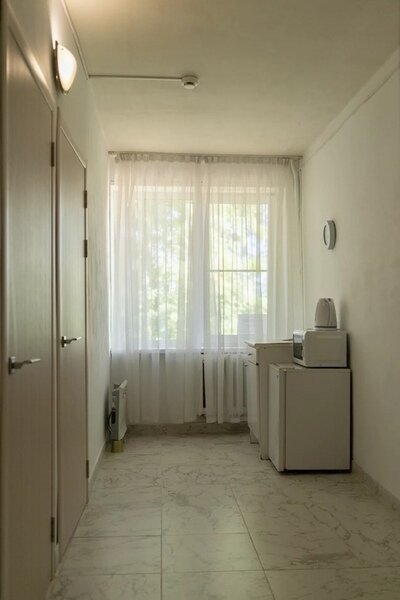 - кухня: холодильник, печь СВЧ, электрический чайник, столовые приборы.
