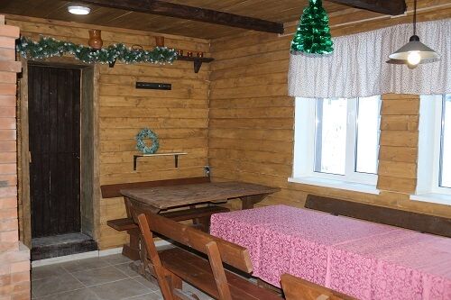 Читать полностьюИзба-шашлычная – теплое помещение, стилизованное под традиционную русскую избу с с большой печью. Здесь можно провести мероприятие с посадкой до 50 человек. Данное помещение универсально как для зимы, так и для летнего периода, позволяет создать колоритное запоминающееся мероприятие, может сопровождаться фольклорной программой. Также изба-шашлычная может использоваться для посиделок небольшой компанией. Живой огонь из печи создает удивительно уютную атмосферу. Здесь Вы можете приготовить шашлык по своему рецепту или воспользоваться услугами наших поваров и мы приготовим блюда для Вас.