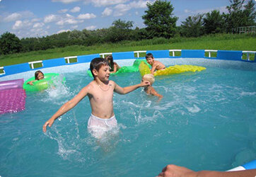 Площадку около бассейна можно использовать как зону для выездной регистрации. Здесь, в открытом пространстве, можно запускать фейерверки и воздушные фонарики, разнообразить праздничную программу конкурсами и танцами на улице.