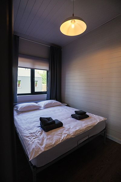 Дом разделён на две отдельные комнаты, в каждой из которых стоят двуспальные кровати.