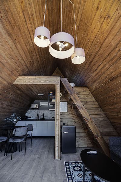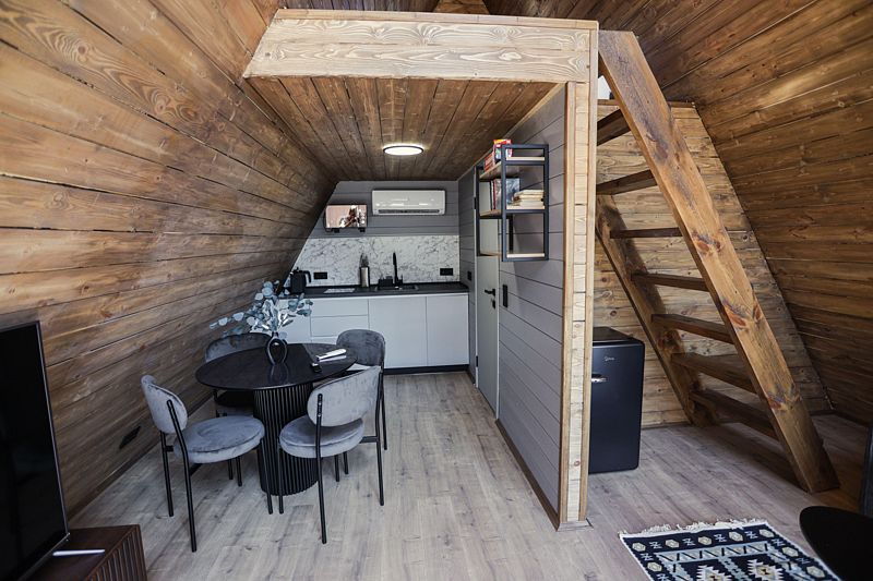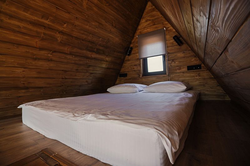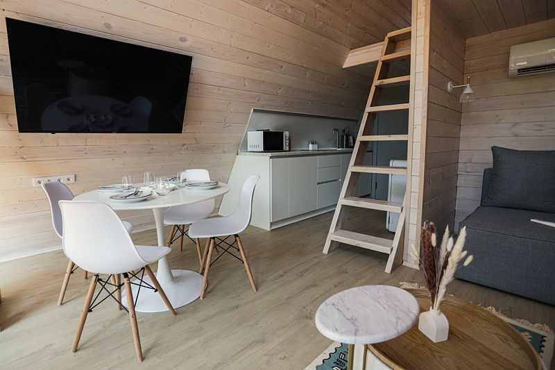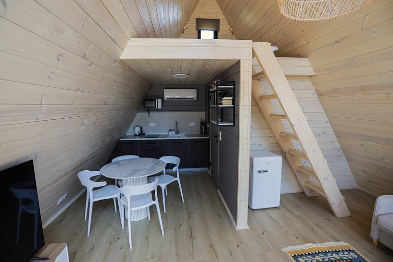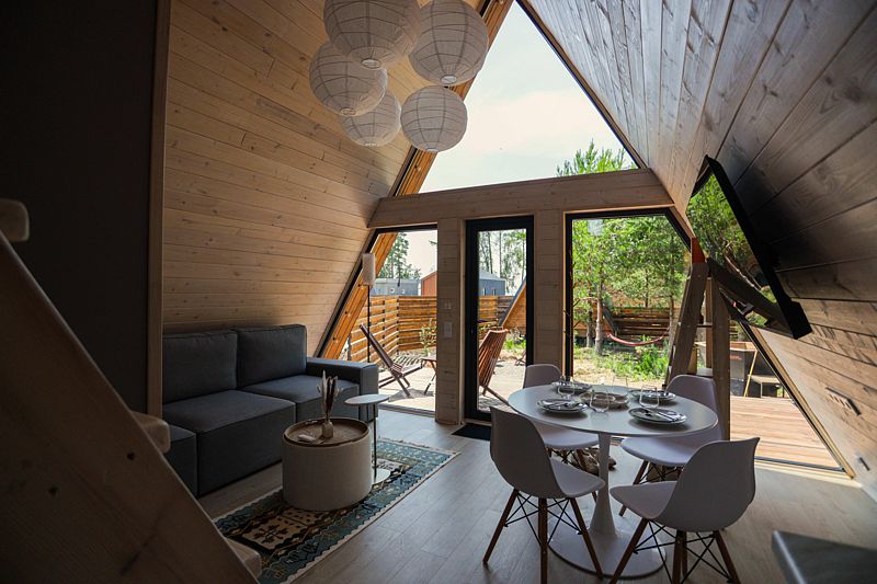 A-Frame (светлый) — это уютный домик для двоих-четверых гостей.