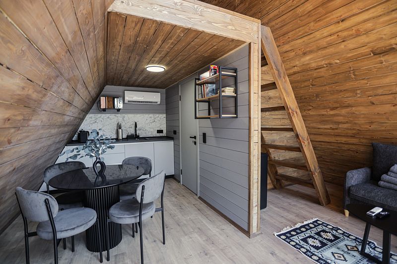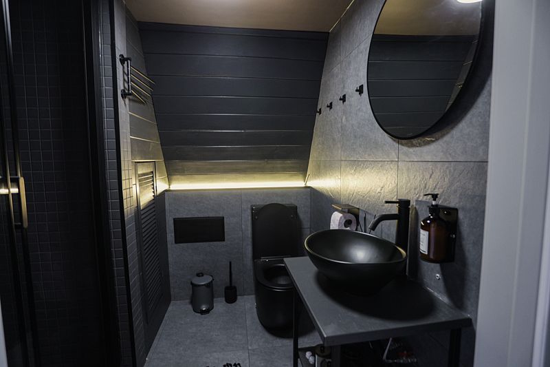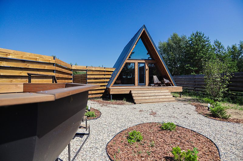 A-Frame (темный) — это уютный домик для двоих-четверых гостей.
