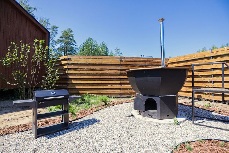 Мангальная зона и чан для купания позволят насладиться природой и свежим воздухом.