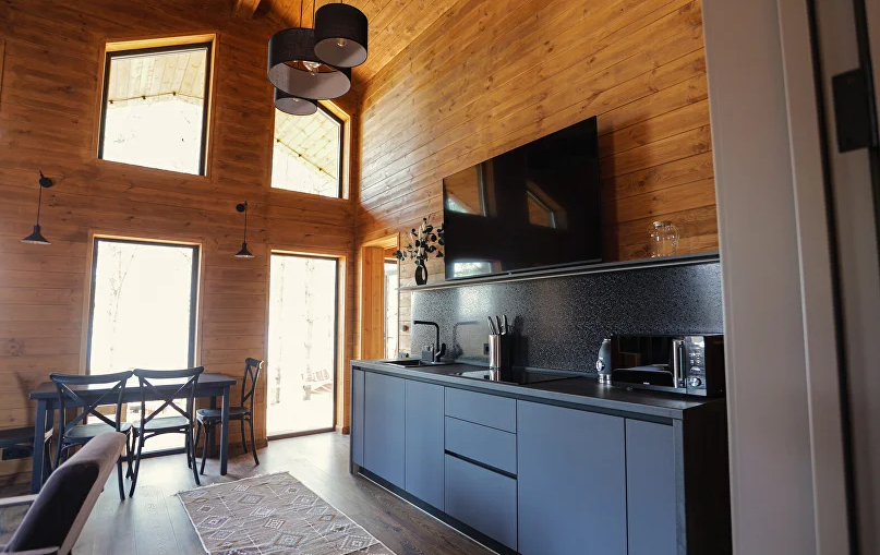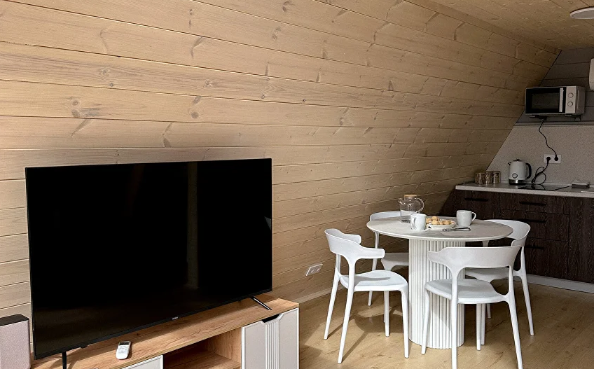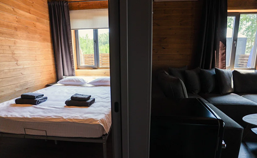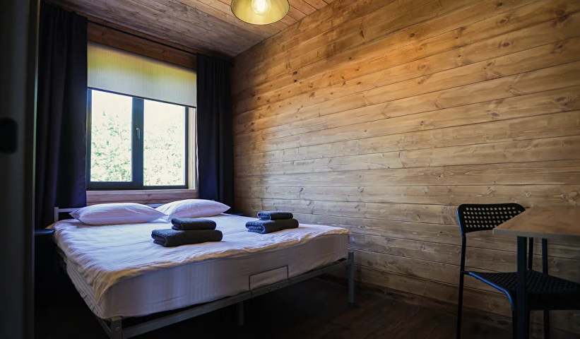 Площадь домика — 36 м². Размещение до 4 человек, за третьего и четвёртого предусмотрена доплата.