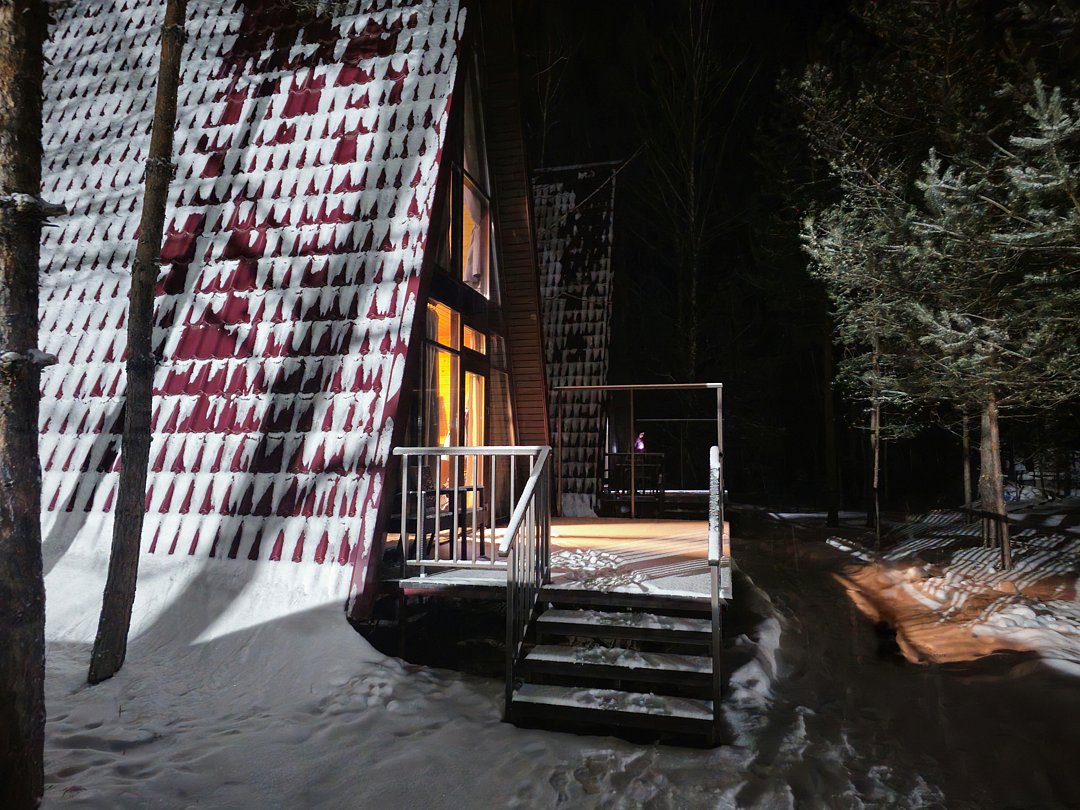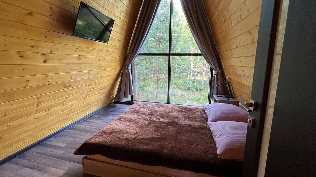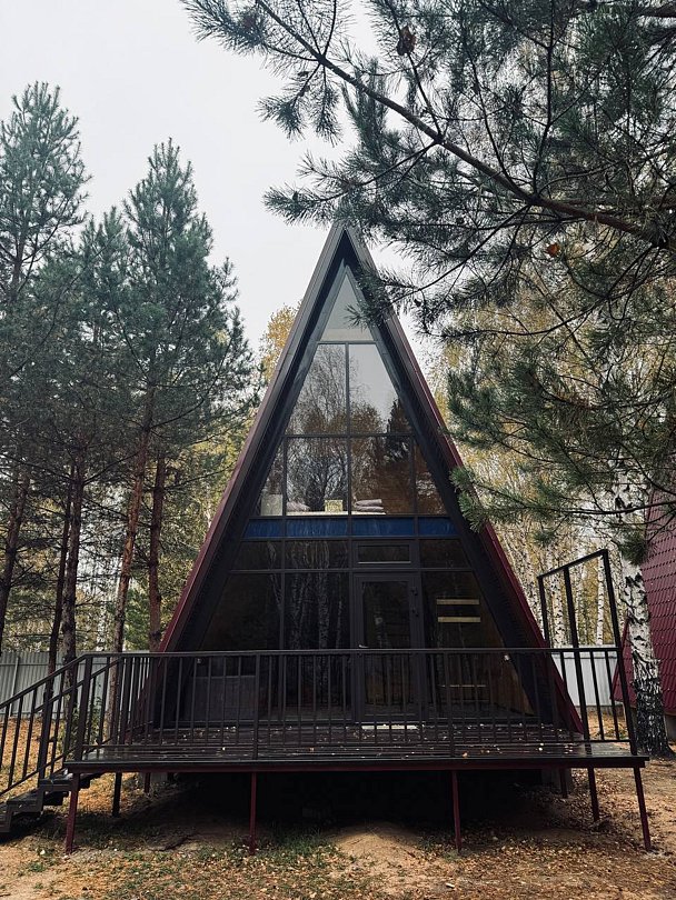 Два отдельно стоящих дома A-frame с просторной террасой на базе отдыха «Щукино». В доме гостиная, кухня, санузел, 2 спальни. Идеальный вариант для семейного проживания.