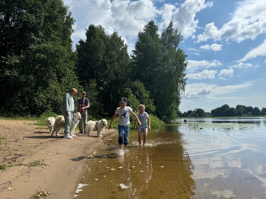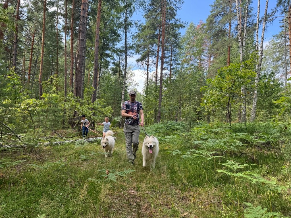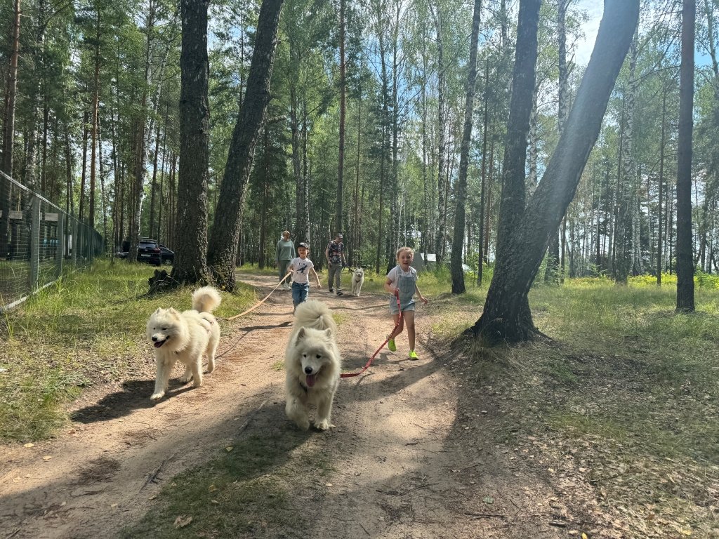 Дог-трекинг (dog tracking), или по-русски прогулка с собаками. Дорогие гости! Предлагаем вам прогулку с любимыми белоснежными питомцами — лайками самоедами. Это не просто прогулка, это занимательная беседа, в которой вы узнаете много интересного о жизни и природе этих собак. Мероприятие занимает около часа, красивый лесной маршрут вдоль реки. Разрешается обнимать, тискать, валяться с собаками на траве и даже в грязи! Животные общительны и дружелюбны, любят детей! За это время вы успеете получить не только удовольствие от общения с животными, но и провести яркую и необычную фотосессию.