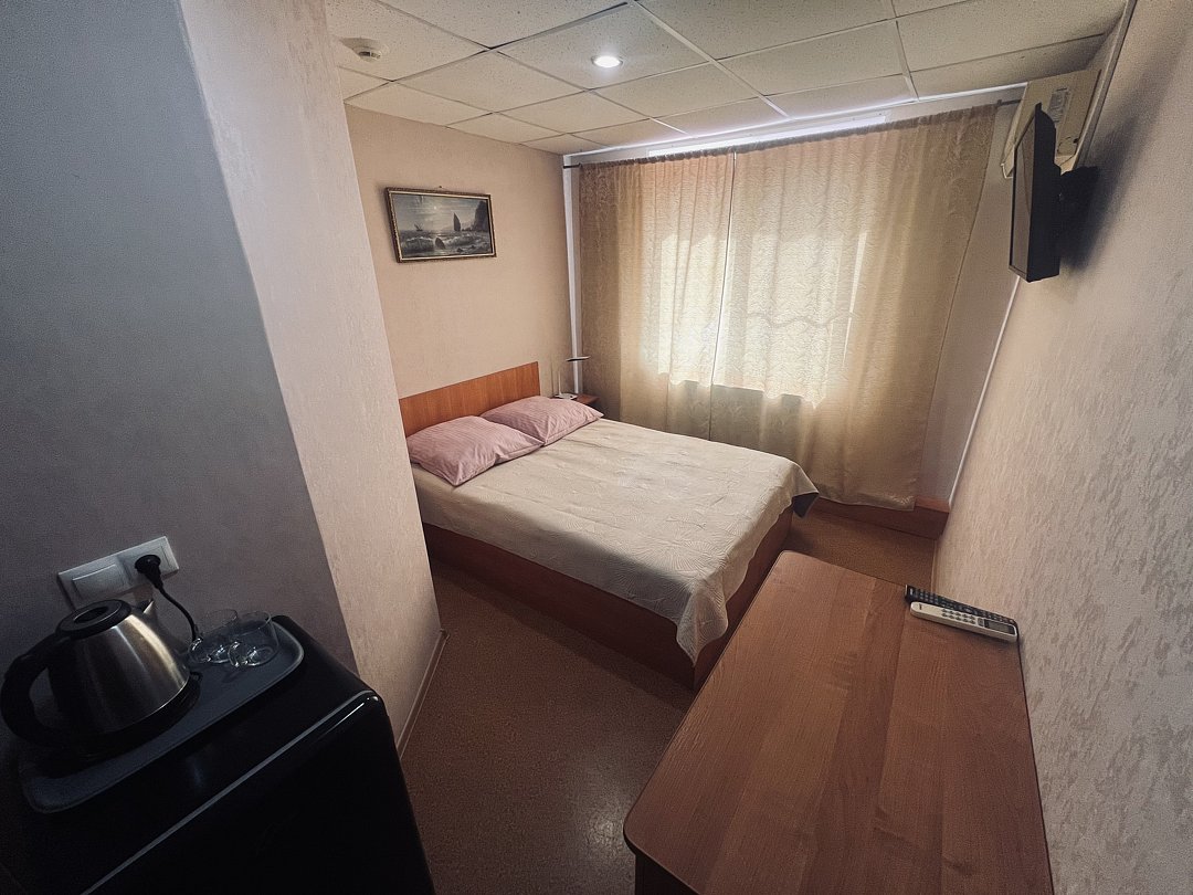 Комната: 2 одноместные кровати, прикроватный столик, 2 стула, вешалка для одежды, телевизор (спутниковое ТВ), минихолодильник, центральное отопление.