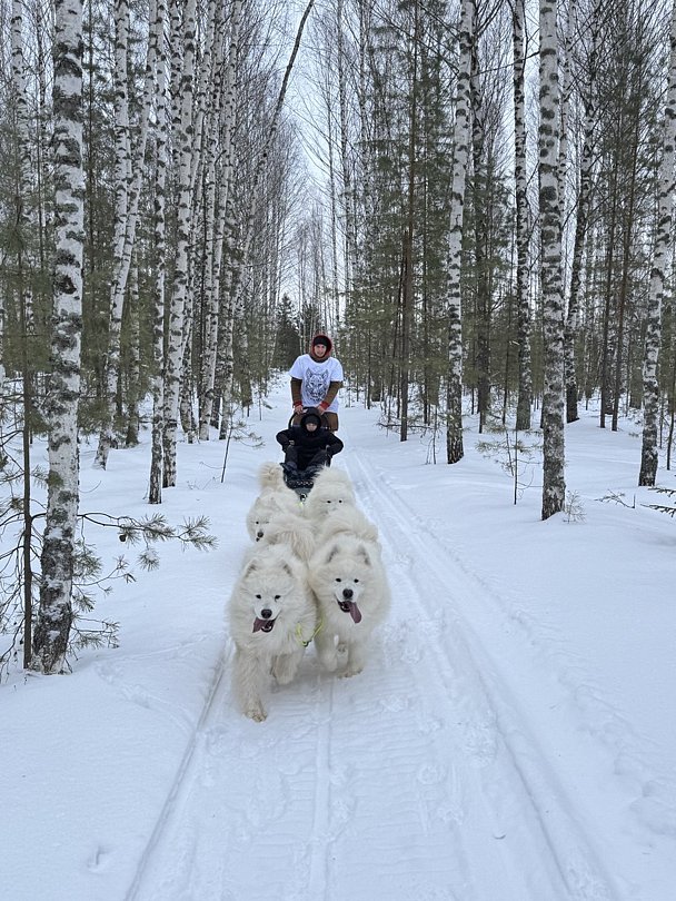 Читать полностьюДог-трекинг (dog tracking), или по-русски прогулка с собаками. Дорогие гости! Предлагаем вам прогулку с любимыми белоснежными питомцами — лайками самоедами. Это не просто прогулка, это занимательная беседа, в которой вы узнаете много интересного о жизни и природе этих собак. Мероприятие занимает около часа, красивый лесной маршрут вдоль реки. Разрешается обнимать, тискать, валяться с собаками на траве и даже в грязи! Животные общительны и дружелюбны, любят детей! За это время вы успеете получить не только удовольствие от общения с животными, но и провести яркую и необычную фотосессию.