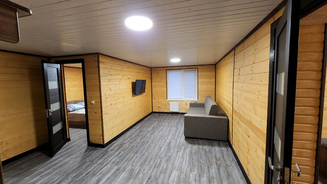 Каждый номер с отдельным входом представляет собой однокомнатное помещение площадью 34 кв.м с собственным санузлом. Оптимальный вариант для семейного проживания.