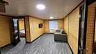 Гостиная: электрическое отопление, раскладывающийся двуспальный диван, пуфик, журнальный столик, вешалка для одежды, шкаф, телевизор (спутниковое ТВ), кондиционер, холодильник с мини-баром.