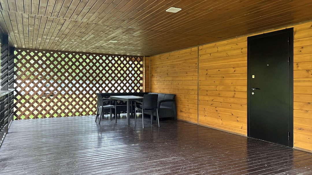 Отдельный коттедж на базе отдыха «Щукино» с просторной террасой. В коттедже есть 2 спальни, гостиная и санузел. Оптимальный вариант для семейного проживания.